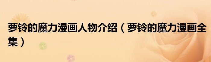 关于萝铃的魔力漫画人物介绍,萝铃的魔力漫画全集这个很多人还不知道,今天菲菲来为大家解答以上的问题,现在让我们一起来看看吧!