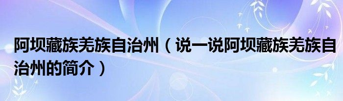 夏弥来为大家解答以下的问题,阿坝藏族羌族自治州,说一说阿坝藏族羌族自治州的简介,现在让我们一起来看看吧!
