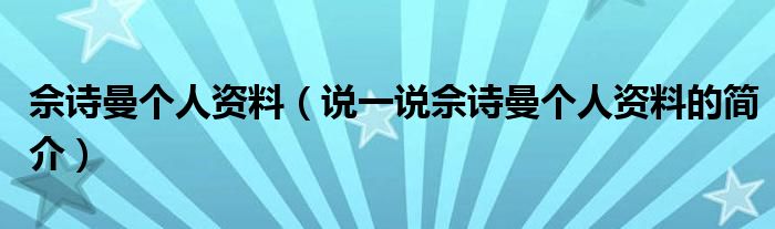 佘诗曼个人资料(说一说佘诗曼个人资料的简介)