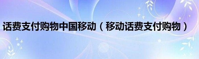 话费支付购物中国移动(移动话费支付购物)