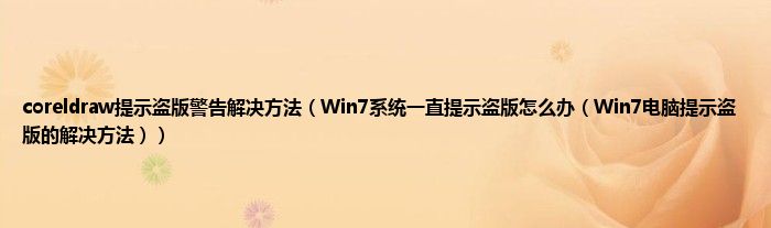 大家好,综合小编来为大家讲解下coreldraw提示盗版警告解决方法,Win7系统一直提示盗版怎么办,Win7电脑提示盗版的解决方法这个很多人还不知道,现在让我们一起来看看吧!