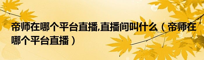 大家好,小晋来为大家解答以下问题,关于帝师在哪个平台直播,直播间叫什么,帝师在哪个平台直播很多人还不知道,今天让我们一起来看看吧!