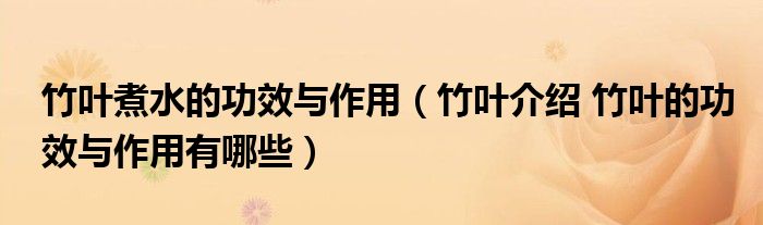 大家好,乐天来为大家解答以下的问题,竹叶煮水的功效与作用,竹叶介绍 竹叶的功效与作用有哪些很多人还不知道,现在让我们一起来看看吧!