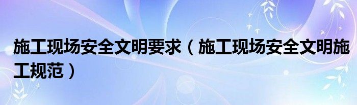关于施工现场安全文明要求,施工现场安全文明施工规范这个很多人还不知道,今天菲菲来为大家解答以上的问题,现在让我们一起来看看吧!