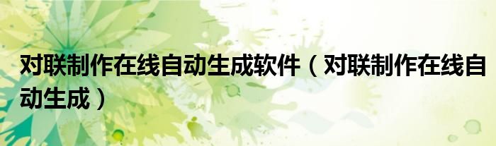 关于对联制作在线自动生成软件,对联制作在线自动生成这个很多人还不知道,今天菲菲来为大家解答以上的问题,现在让我们一起来看看吧!