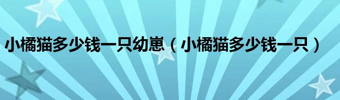 关于小橘猫多少钱一只幼崽,小橘猫多少钱一只这个很多人还不知道,今天菲菲来为大家解答以上的问题,现在让我们一起来看看吧!