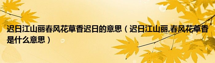 大家好,乐儿来为大家解答以下问题,迟日江山丽春风花草香迟日的意思,迟日江山丽,春风花草香是什么意思很多人还不知道,现在让我们一起来看看吧!