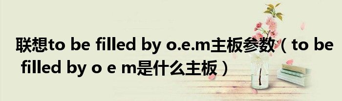 联想to be filled by o.e.m主板参数(to be filled by o e m是什么主板)