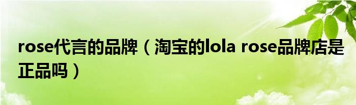 关于rose代言的品牌,淘宝的lola rose品牌店是正品吗这个很多人还不知道,今天菲菲来为大家解答以上的问题,现在让我们一起来看看吧!
