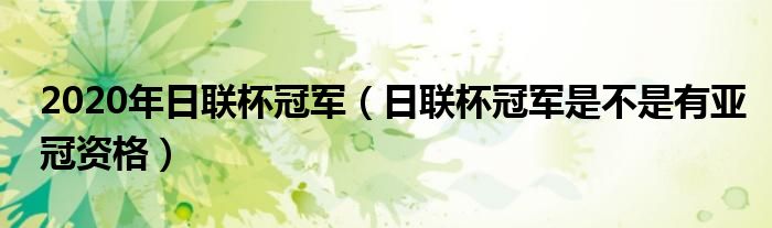 关于2020年日联杯冠军,日联杯冠军是不是有亚冠资格这个很多人还不知道,今天菲菲来为大家解答以上的问题,现在让我们一起来看看吧!