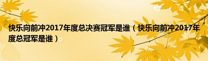 关于快乐向前冲2017年度总决赛冠军是谁,快乐向前冲2017年度总冠军是谁这个很多人还不知道,今天菲菲来为大家解答以上的问题,现在让我们一起来看看吧!