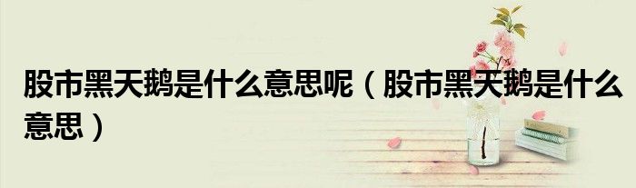 关于股市黑天鹅是什么意思呢,股市黑天鹅是什么意思这个很多人还不知道,今天菲菲来为大家解答以上的问题,现在让我们一起来看看吧!