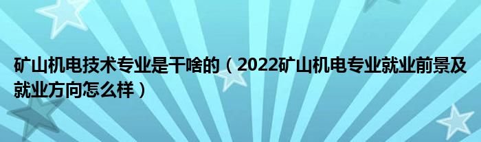 大家好,乐儿来为大家解答以下问题,矿山机电技术专业是干啥的,2022矿山机电专业就业前景及就业方向怎么样很多人还不知道,现在让我们一起来看看吧!