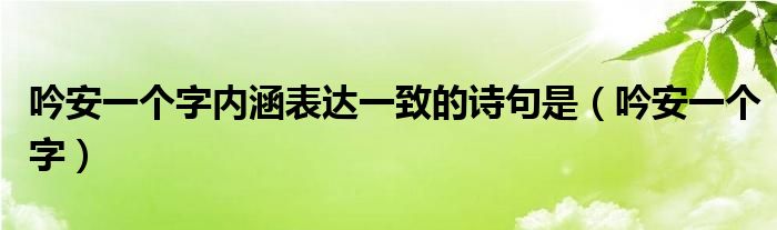 关于吟安一个字内涵表达一致的诗句是,吟安一个字这个很多人还不知道,今天菲菲来为大家解答以上的问题,现在让我们一起来看看吧!