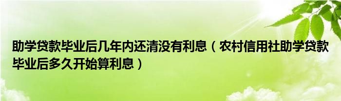 大家好,乐儿来为大家解答以下问题,助学贷款毕业后几年内还清没有利息,农村信用社助学贷款毕业后多久开始算利息很多人还不知道,现在让我们一起来看看吧!
