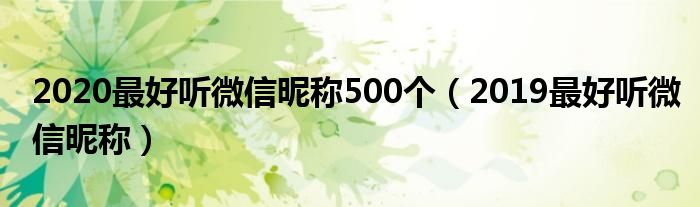 大家好,小晋来为大家解答以下问题,关于2020最好听微信昵称500个,2019最好听微信昵称很多人还不知道,今天让我们一起来看看吧!