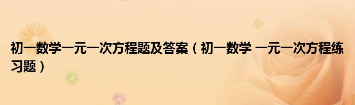 关于初一数学一元一次方程题及答案,初一数学 一元一次方程练习题这个很多人还不知道,今天菲菲来为大家解答以上的问题,现在让我们一起来看看吧!
