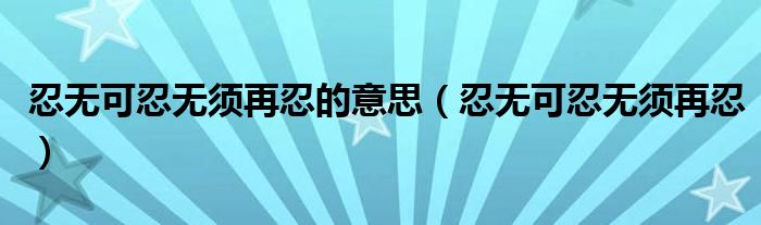 大家好,小联来为大家解答以上的问题。忍无可忍无须再忍的意思,忍无可忍无须再忍这个很多人还不知道,现在让我们一起来看看吧!