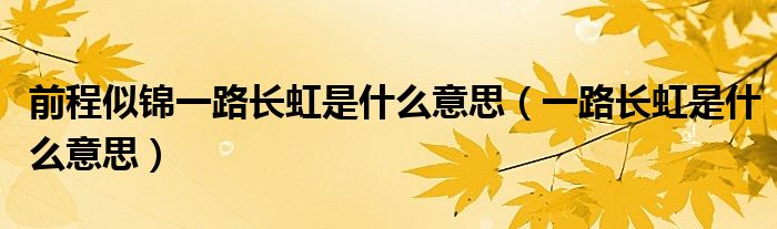 大家好,小晋来为大家解答以下问题,关于前程似锦一路长虹是什么意思,一路长虹是什么意思很多人还不知道,今天让我们一起来看看吧!