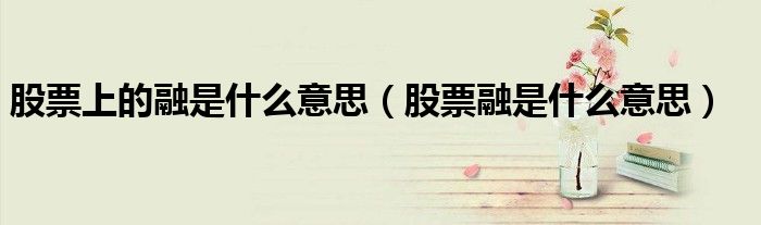 关于股票上的融是什么意思,股票融是什么意思这个很多人还不知道,今天菲菲来为大家解答以上的问题,现在让我们一起来看看吧!