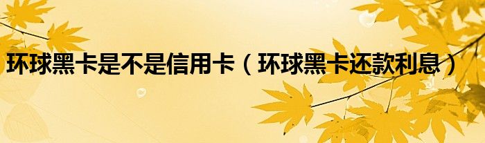 大家好,我是小科,我来为大家解答以上问题。环球黑卡是不是信用卡,环球黑卡还款利息很多人还不知道,现在让我们一起来看看吧!
