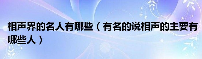 大家好,小夏来为大家讲解下。相声界的名人有哪些,有名的说相声的主要有哪些人很多人还不知道,现在让我们一起来看看吧!