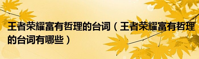 大家好,小华来为大家解答以上的问题。王者荣耀富有哲理的台词,王者荣耀富有哲理的台词有哪些这个很多人还不知道,现在让我们一起来看看吧!