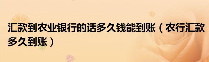 汇款到农业银行的话多久钱能到账(农行汇款多久到账)