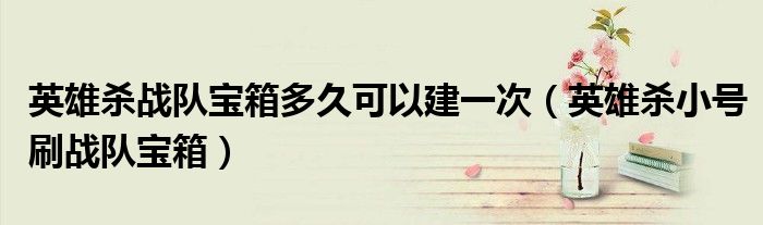 大家好,我是小科,我来为大家解答以上问题。英雄杀战队宝箱多久可以建一次,英雄杀小号刷战队宝箱很多人还不知道,现在让我们一起来看看吧!