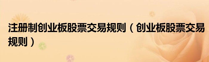 大家好,小联来为大家解答以上的问题。注册制创业板股票交易规则,创业板股票交易规则这个很多人还不知道,现在让我们一起来看看吧!
