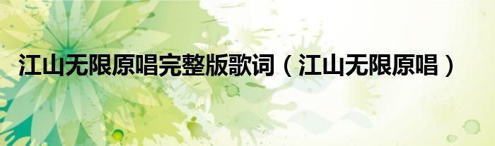 大家好,小晋来为大家解答以下问题,关于江山无限原唱完整版歌词,江山无限原唱很多人还不知道,今天让我们一起来看看吧!