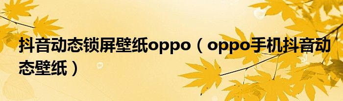 抖音动态锁屏壁纸oppo(oppo手机抖音动态壁纸)