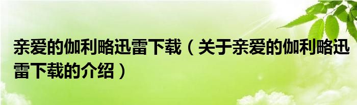 亲爱的伽利略迅雷下载(关于亲爱的伽利略迅雷下载的介绍)