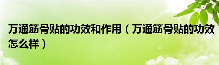 大家好,乐天来为大家解答以下的问题,万通筋骨贴的功效和作用,万通筋骨贴的功效怎么样很多人还不知道,现在让我们一起来看看吧!