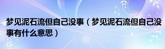 1、梦见泥石流但自己没事,得此梦者五行主土,乃是坤土之象征,则近期在事业中多有包容心,对你生活有利,此乃吉兆,夏天梦之吉利,冬天梦之不吉利。