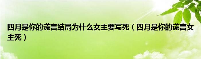 大家好,小联来为大家解答以上的问题。四月是你的谎言结局为什么女主要写死,四月是你的谎言女主死这个很多人还不知道,现在让我们一起来看看吧!