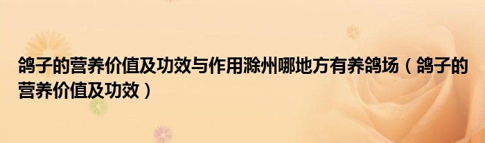 大家好,乐天来为大家解答以下的问题,鸽子的营养价值及功效与作用滁州哪地方有养鸽场,鸽子的营养价值及功效很多人还不知道,现在让我们一起来看看吧!