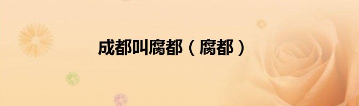 1、成都从什么时候开始叫腐都,无从考证。它是阿宅人在帝都和魔都的基础上创造的,现在已经成为一个既定的名称。