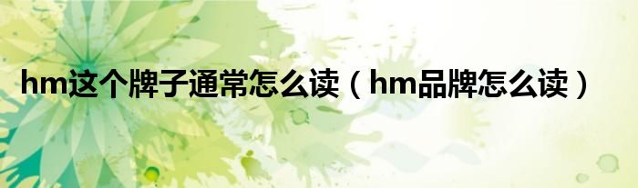 大家好,小晋来为大家解答以下问题,关于hm这个牌子通常怎么读,hm品牌怎么读很多人还不知道,今天让我们一起来看看吧!