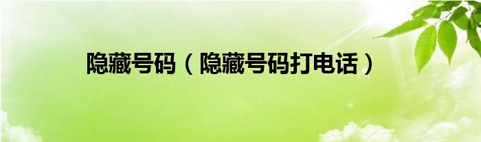 隐藏号码(隐藏号码打电话)