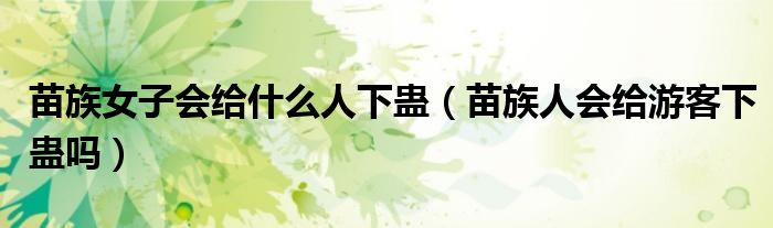 苗族女子会给什么人下蛊(苗族人会给游客下蛊吗)