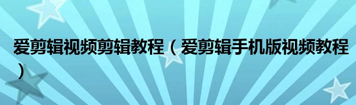 大家好,小晋来为大家解答以下问题,关于爱剪辑视频剪辑教程,爱剪辑手机版视频教程很多人还不知道,今天让我们一起来看看吧!