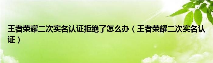 大家好,小晋来为大家解答以下问题,关于王者荣耀二次实名认证拒绝了怎么办,王者荣耀二次实名认证很多人还不知道,今天让我们一起来看看吧!