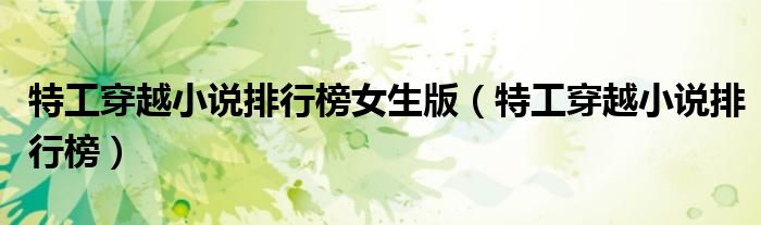 大家好,小晋来为大家解答以下问题,关于特工穿越小说排行榜女生版,特工穿越小说排行榜很多人还不知道,今天让我们一起来看看吧!