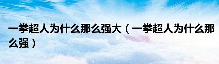 大家好,小晋来为大家解答以下问题,关于一拳超人为什么那么强大,一拳超人为什么那么强很多人还不知道,今天让我们一起来看看吧!