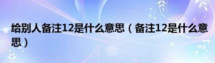 大家好,小晋来为大家解答以下问题,关于给别人备注12是什么意思,备注12是什么意思很多人还不知道,今天让我们一起来看看吧!
