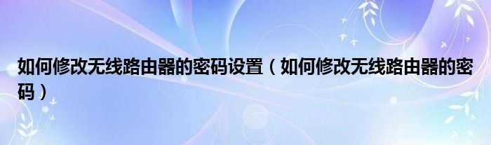 无线路由器如何更改密码?