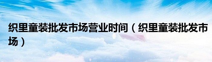 大家好,小晋来为大家解答以下问题,关于织里童装批发市场营业时间,织里童装批发市场很多人还不知道,今天让我们一起来看看吧!