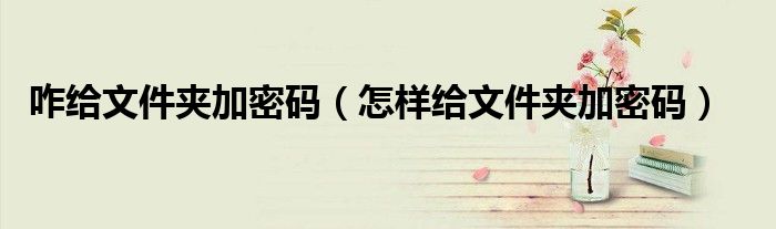 大家好,来宝来为大家解答以下问题,咋给文件夹加密码,怎样给文件夹加密码很多人还不知道,今天让我们一起来看看吧!