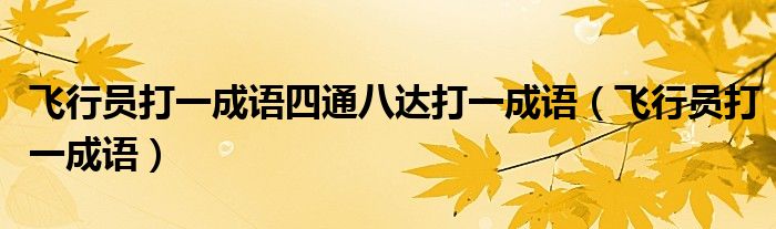 大家好,小晋来为大家解答以下问题,关于飞行员打一成语四通八达打一成语,飞行员打一成语很多人还不知道,今天让我们一起来看看吧!
